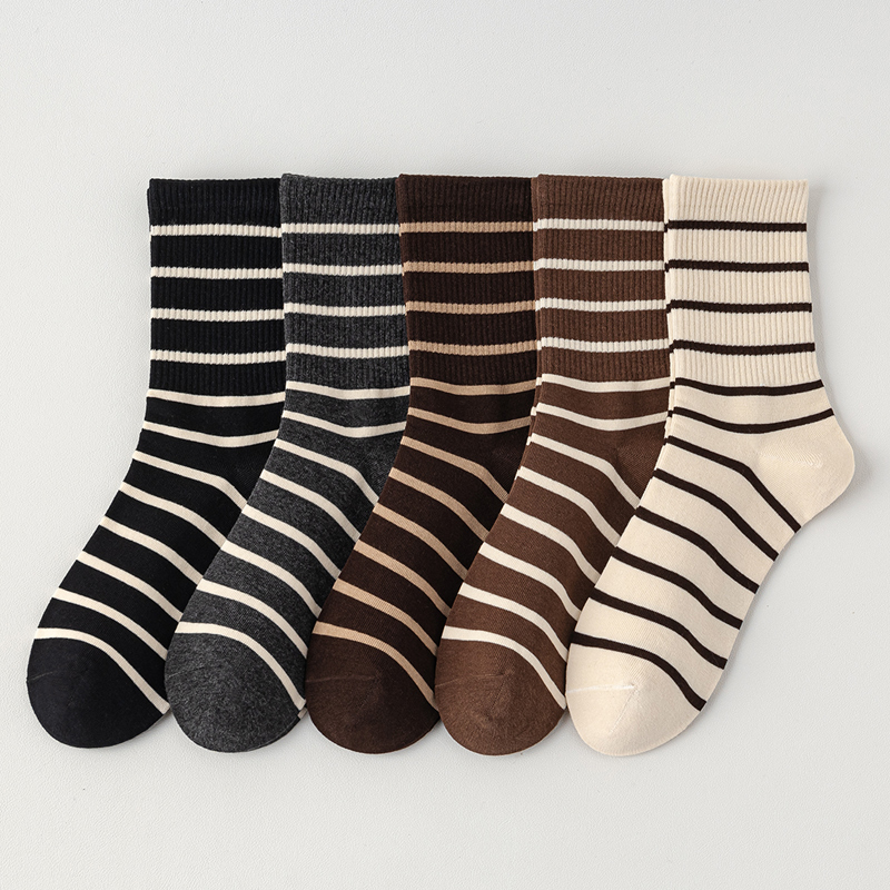 无骨中筒袜抗菌防臭抗起球棉袜 秋冬季 黑色条纹袜子女2025新款 爆款