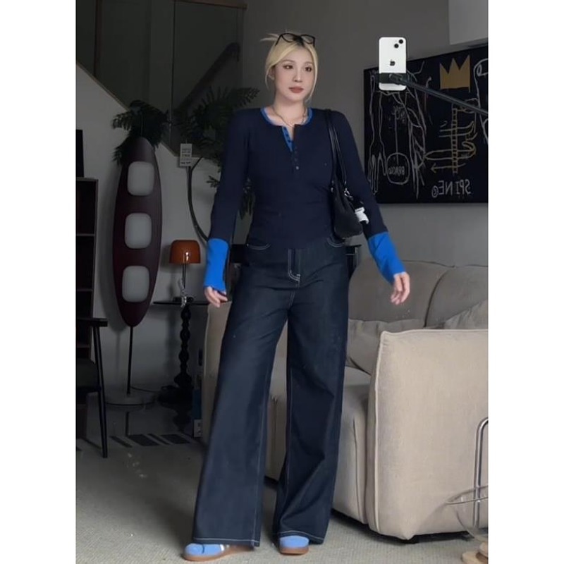 V领正肩针织打底衫 200斤 洋气内搭下摆不规则上衣 宽松显瘦