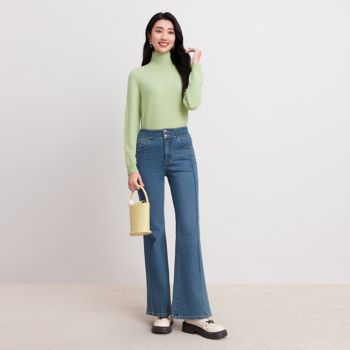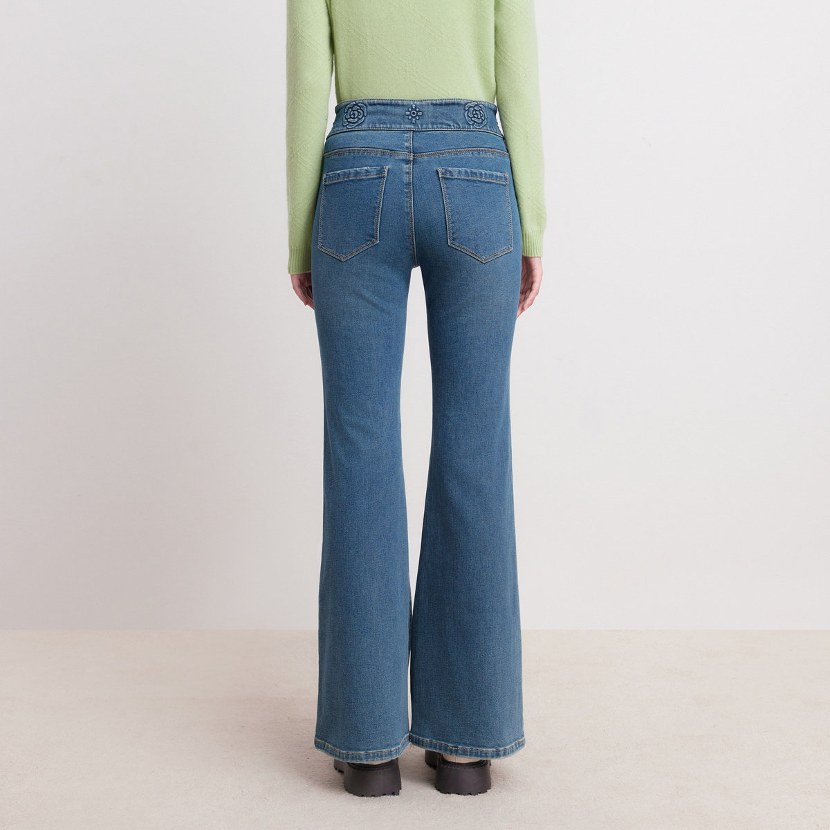 koradior珂莱蒂尔休闲简约舒适微喇裤 女 水洗牛仔裤