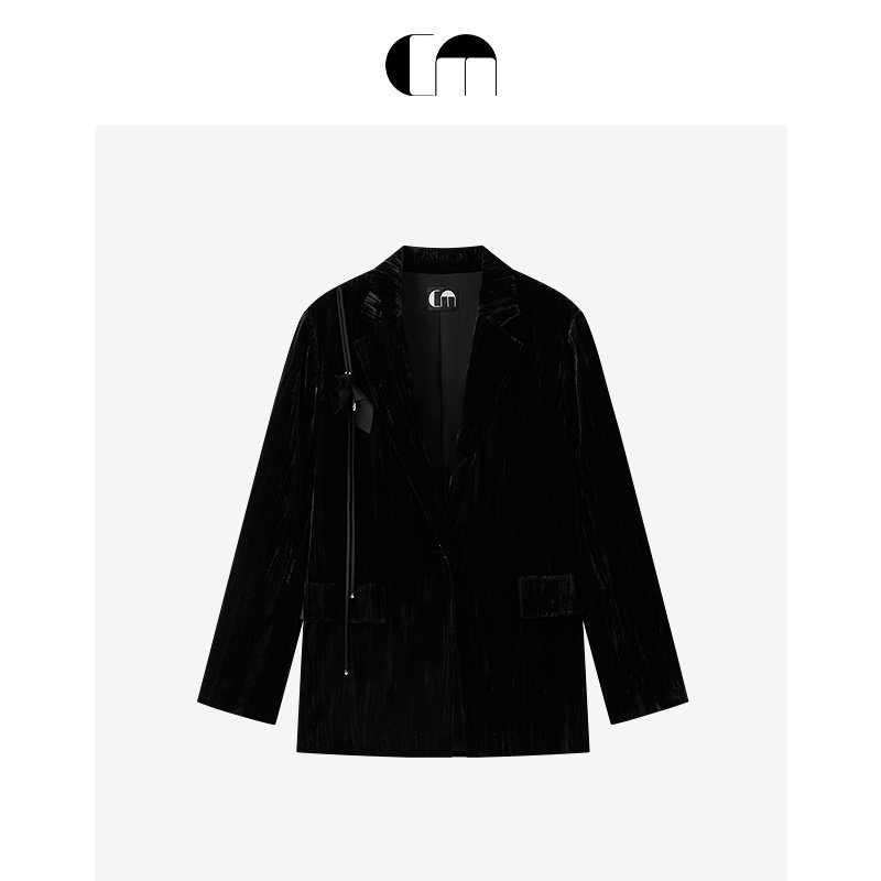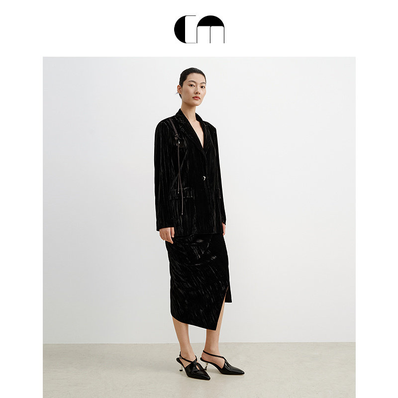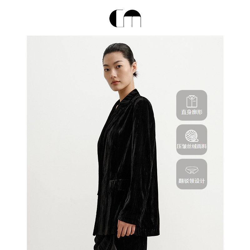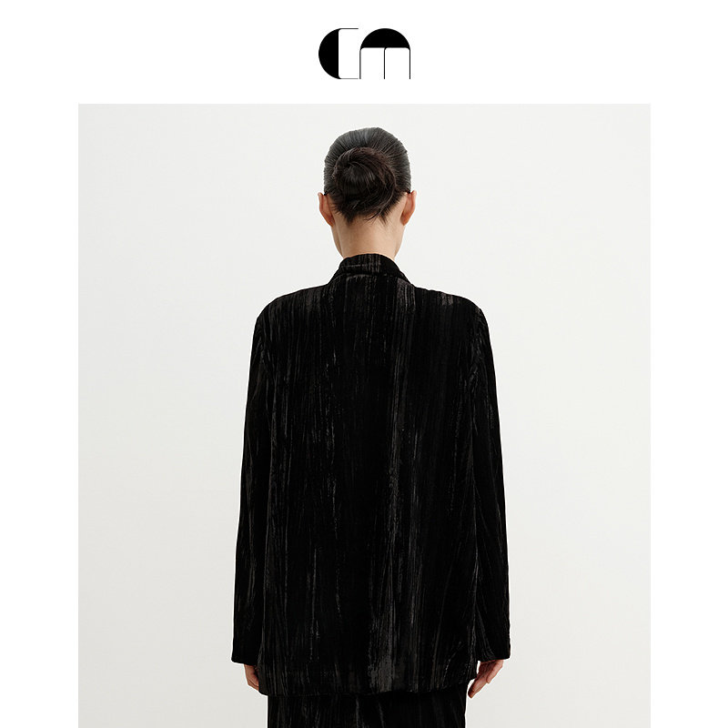 马蹄莲花片黑色丝绒西装 COMME MOI吕燕设计师早春女装