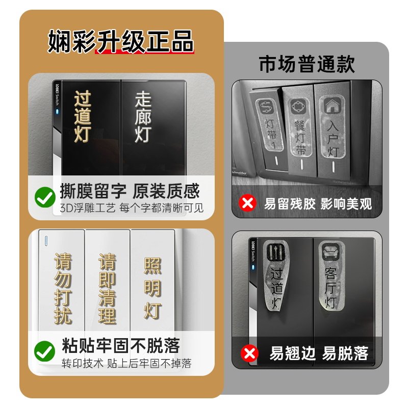 灯开关标识贴夜光2025新款 饰标签去膜留字定制 开关贴纸家用面板装