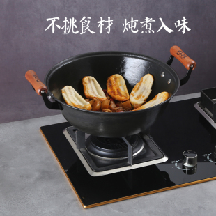 中福加深铁锅铸铁锅无涂层老式 炒菜锅圆底广西陆川生铁锅龟纹铁锅