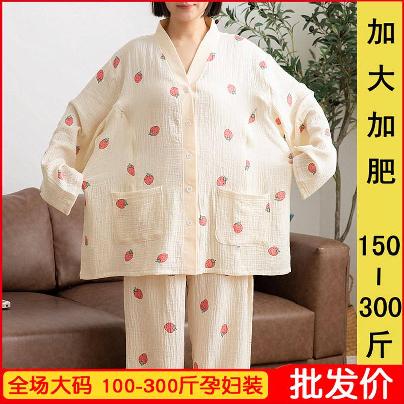 200 孕产妇月i子服大码 300斤宽松哺乳睡衣纯棉纱布家居服 薄款 夏季