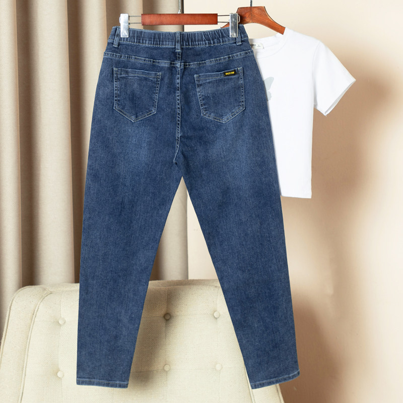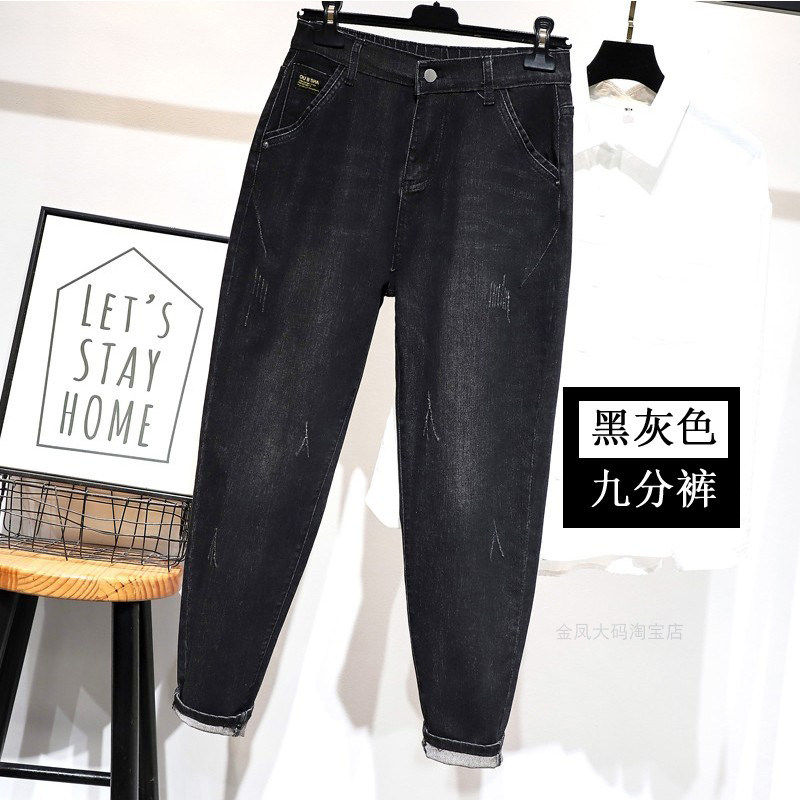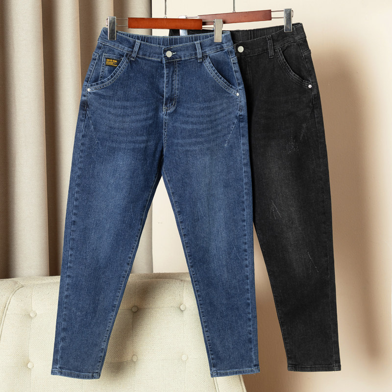 子宽松妈妈哈伦裤 200斤女胖妹妹高腰显瘦老爹裤 女大码 弹力牛仔裤
