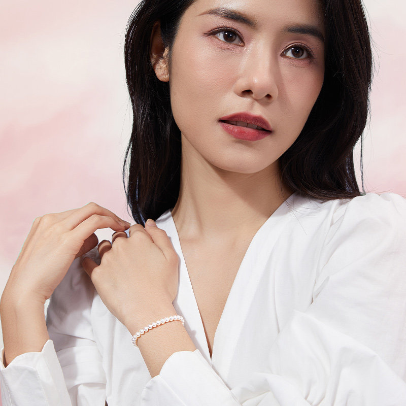 周六福珠宝珍珠手链天然淡水珍珠手串弹力绳送女友新年礼物