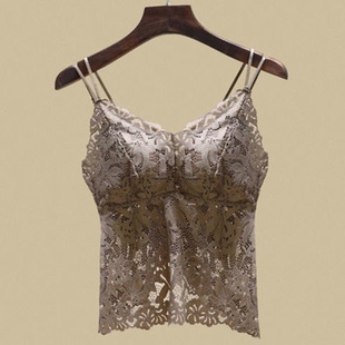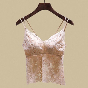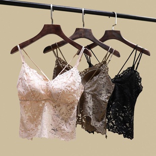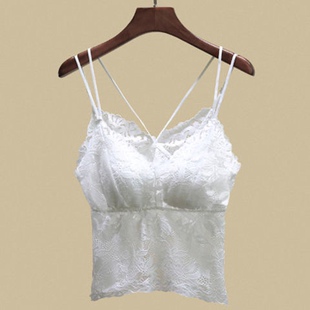 带胸垫一体内衣蕾丝打底背心女美背外穿聚拢大码 胖mm吊带抹胸上衣
