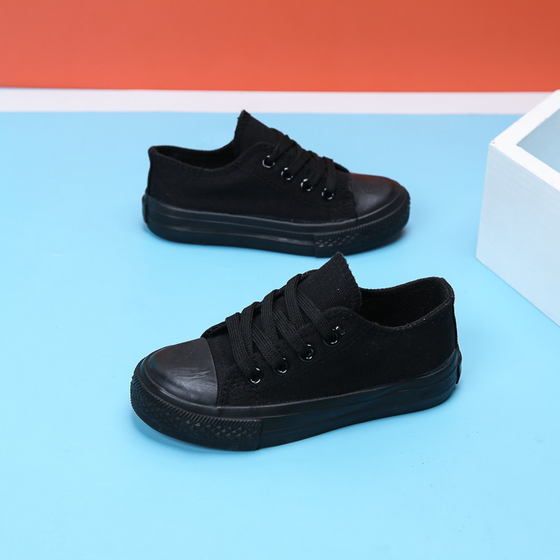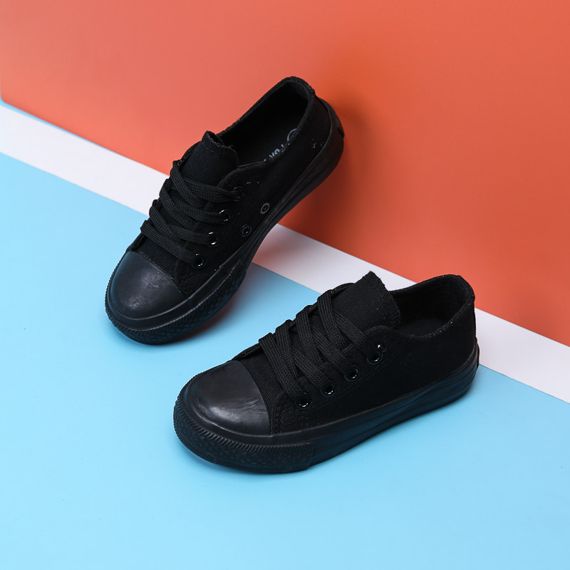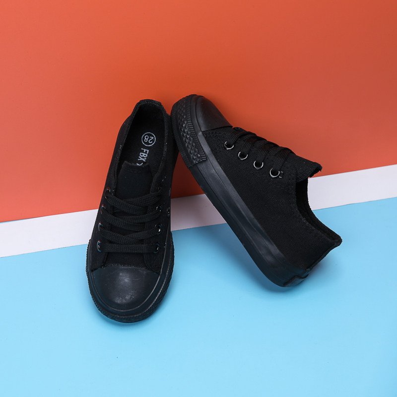 男童女童鞋 球鞋 子大童板鞋 全黑运动鞋 小孩布鞋 学生儿童黑色帆布鞋