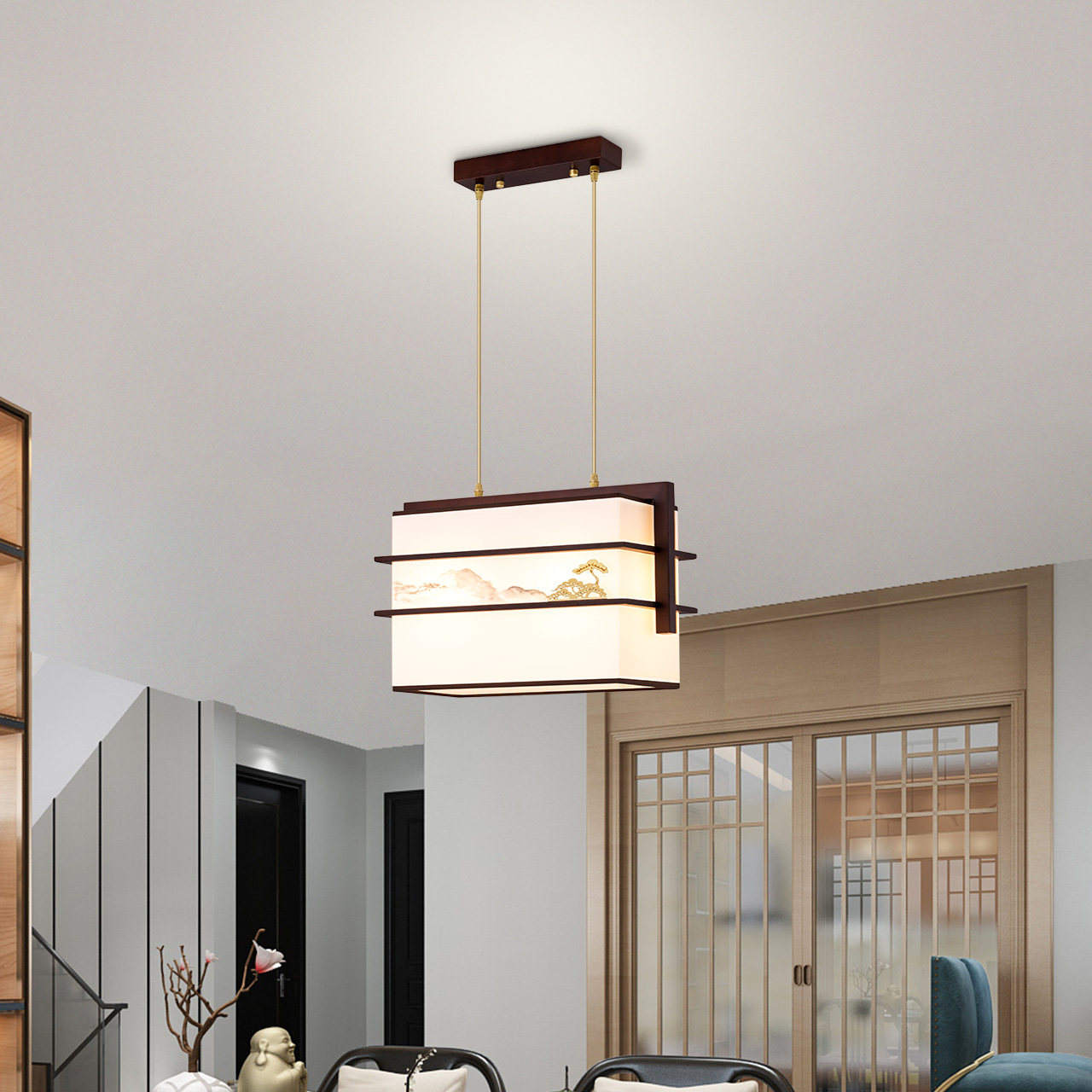 2025新款 餐厅吊灯胡桃木实木护眼极简办公室茶室一字长条餐桌吊灯