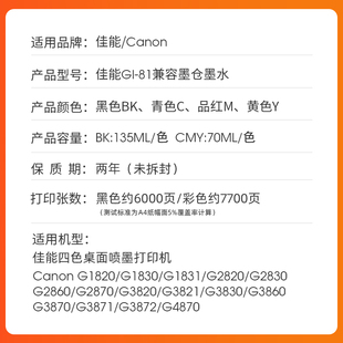 G3821 G3872四色打印机连供墨水 G2820 G2870 G3871 G3870 G3820 G3860 G1831 81墨水G1820 近墨者适用佳能GI