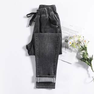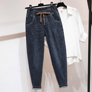 子老爹哈伦裤 女松紧腰胖MM显瘦200斤胯宽大腿粗裤 弹力牛仔裤 大码