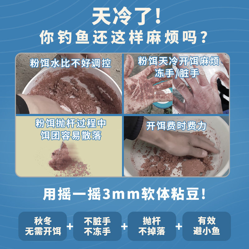 霸王戟野钓秋冬季 摇三摇粉软体秒粘豆鲫鲤鱼 红虫蚯蚓颗粒饵料新款
