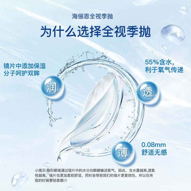 抛2片隐形眼镜透明近视眼镜3月抛官方正品 海俪恩全视季 自营