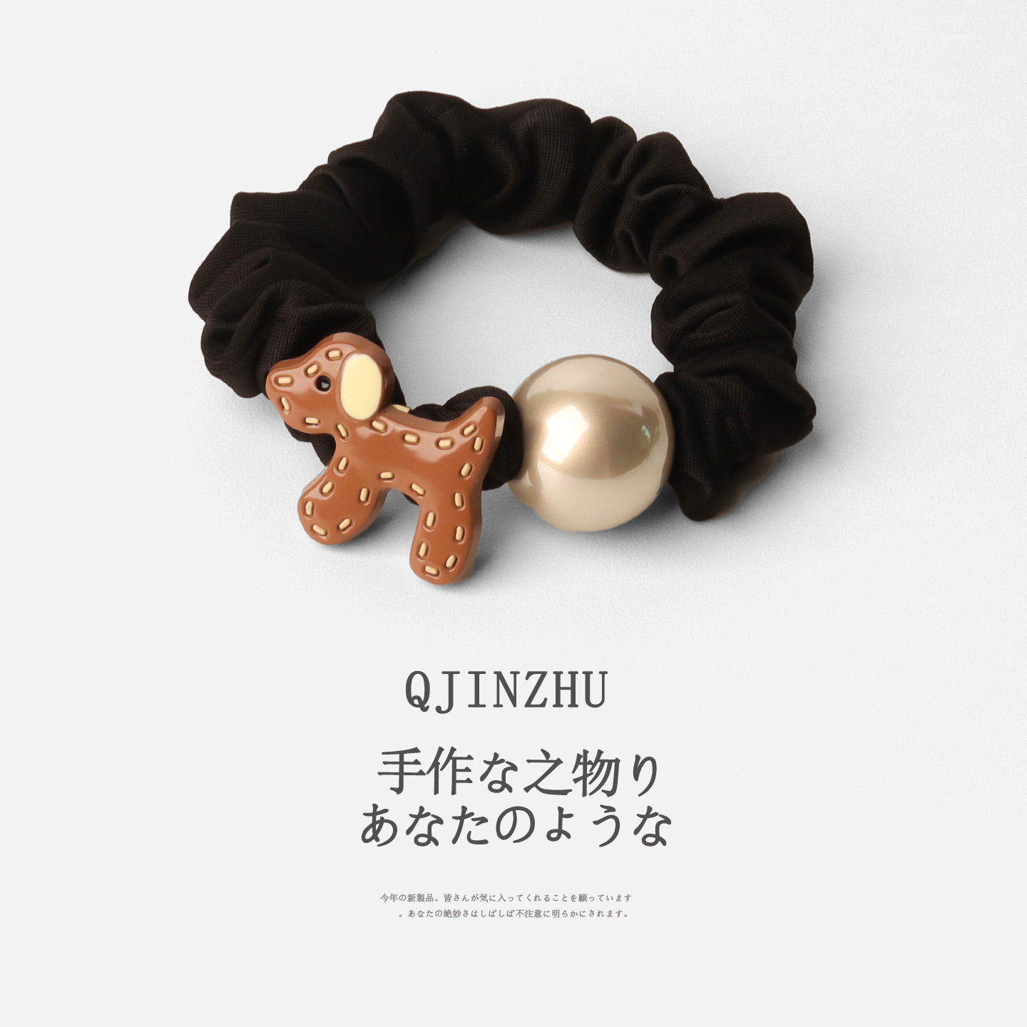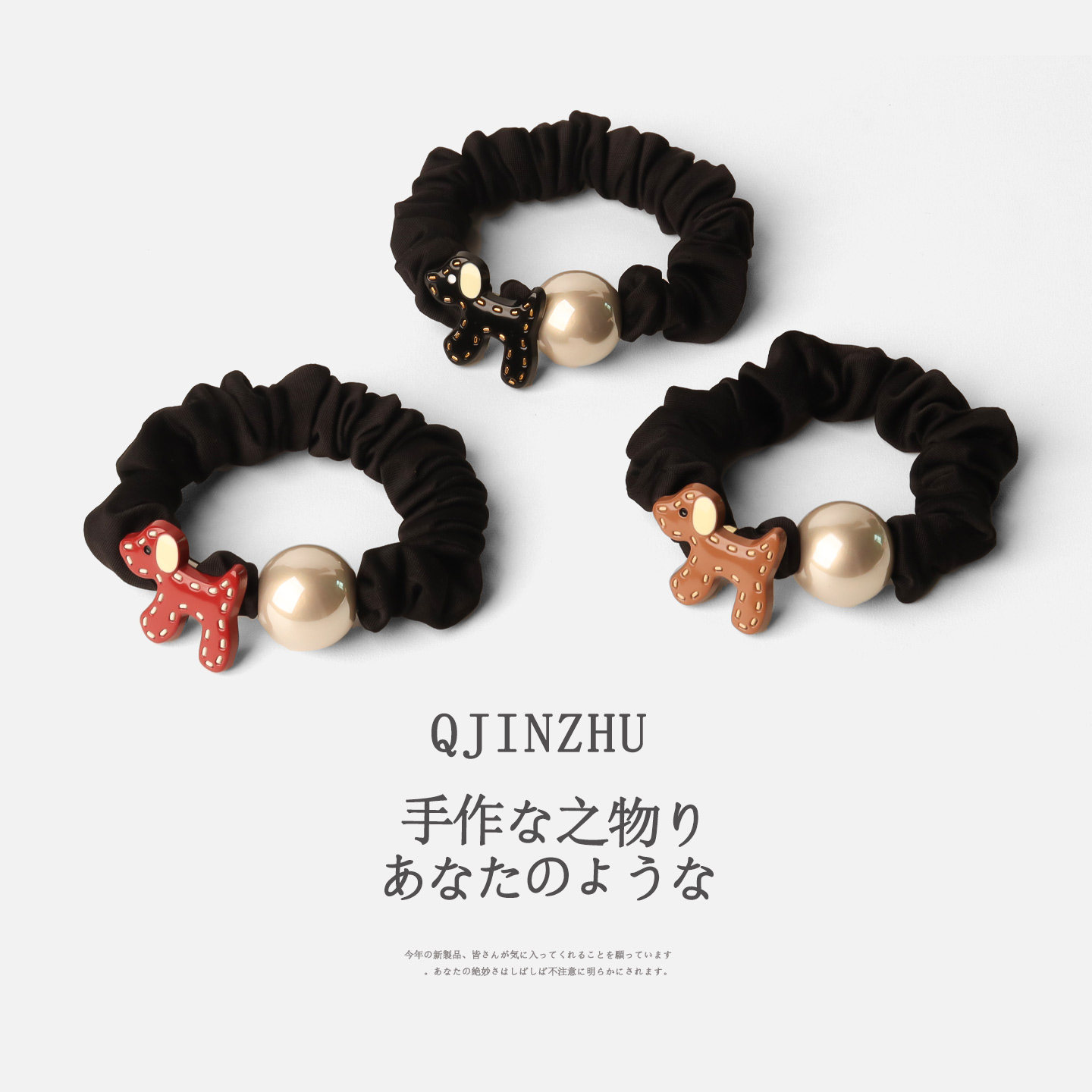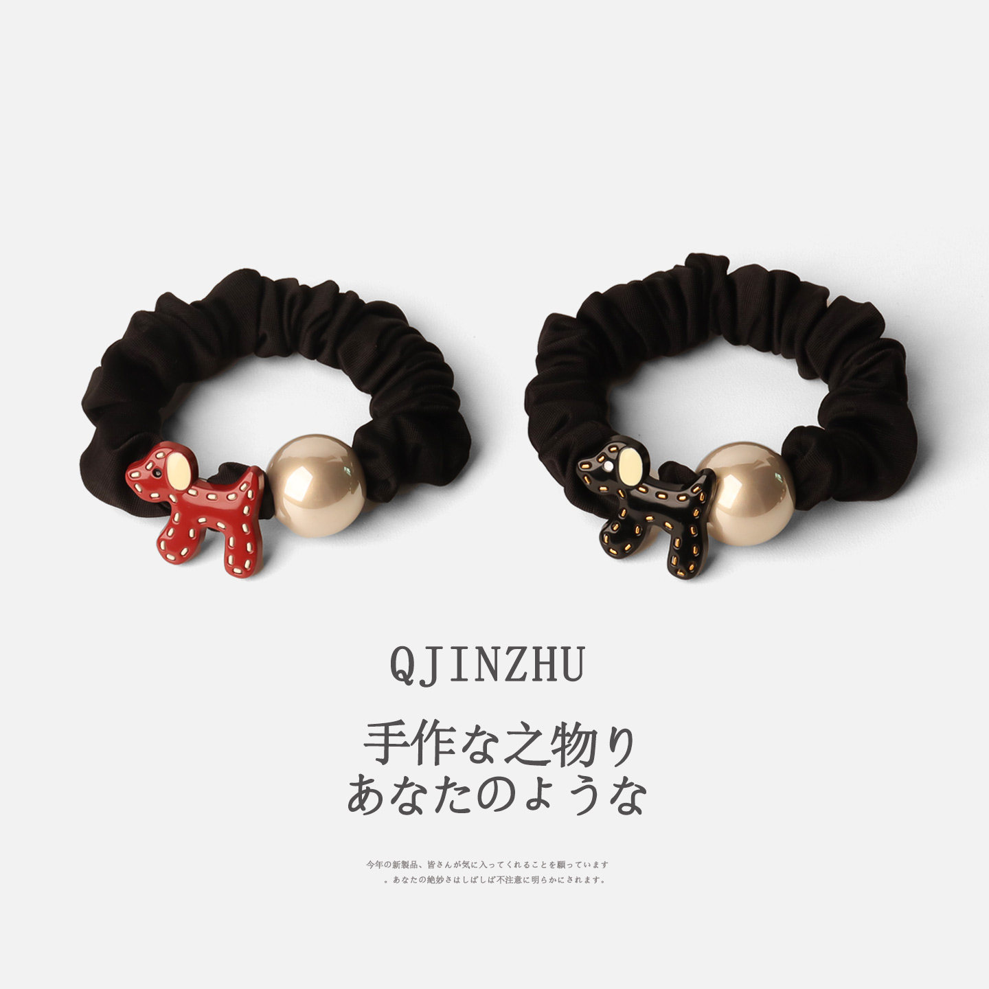 卡通小狗圆球橡皮筋女2025年新款 简约大肠发圈扎马尾高弹力发绳