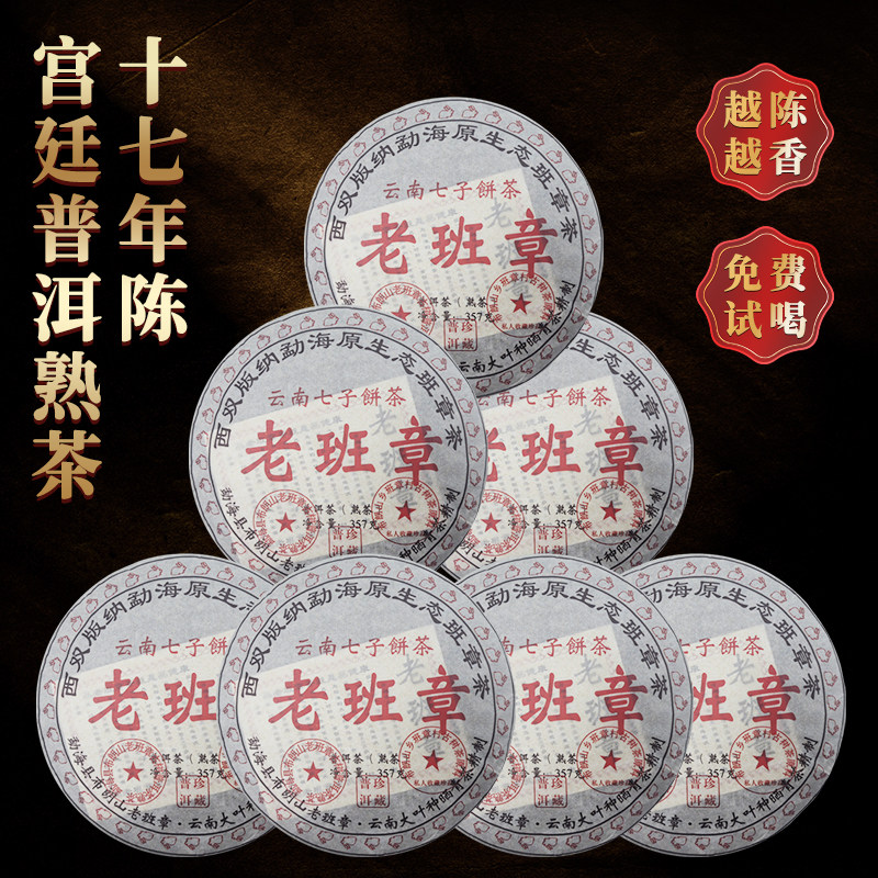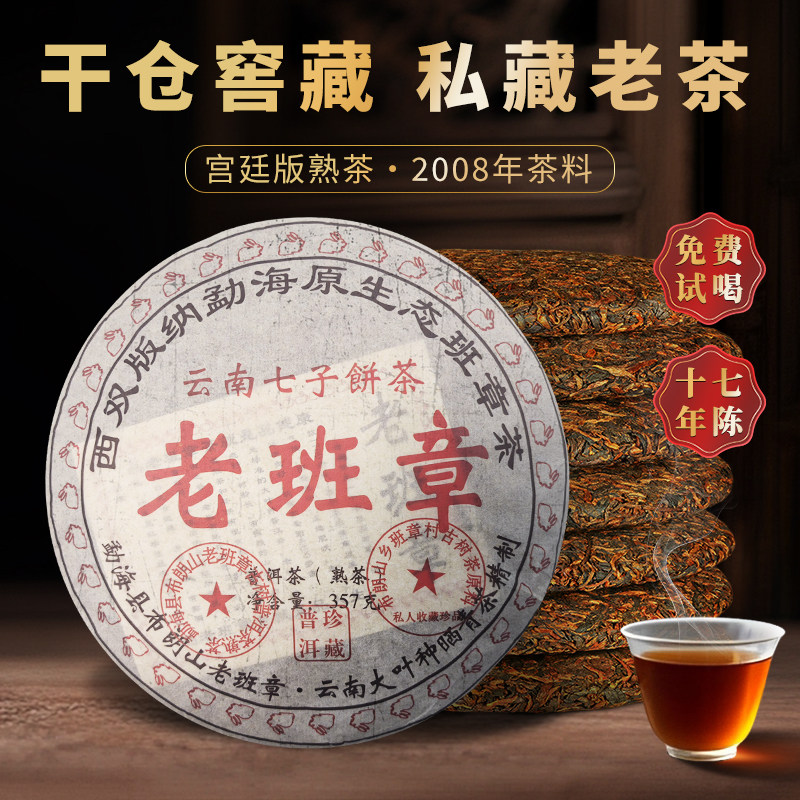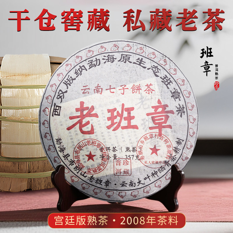 2008年云南勐海原生态班章七子饼茶老班章古树普洱熟茶特惠冲量