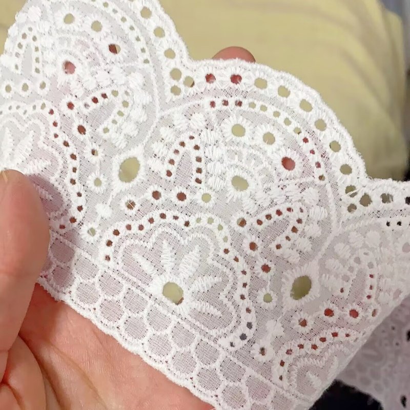 7.5厘米宽棉白刺绣蕾丝花边辅料镂空绣花手工diy裙边衣领袖 饰 口装