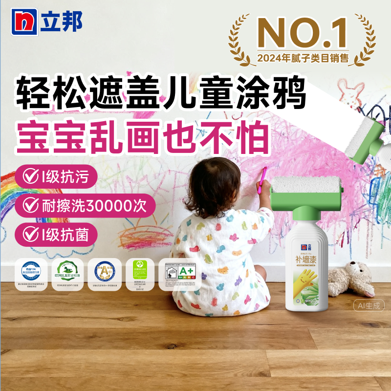 立邦补墙漆抗污滚筒漆乳胶漆墙面修复白色抗甲醛白墙室内修补神器