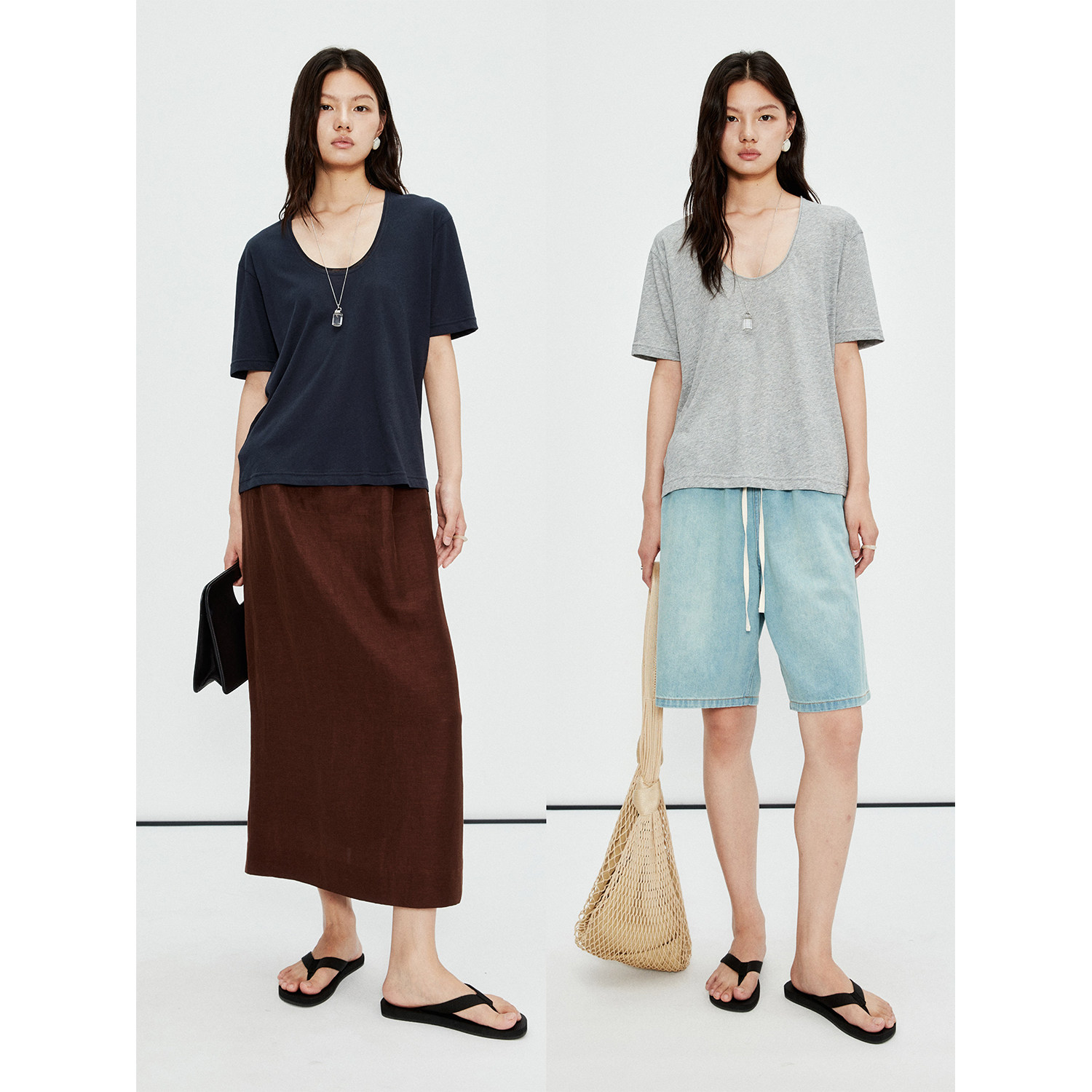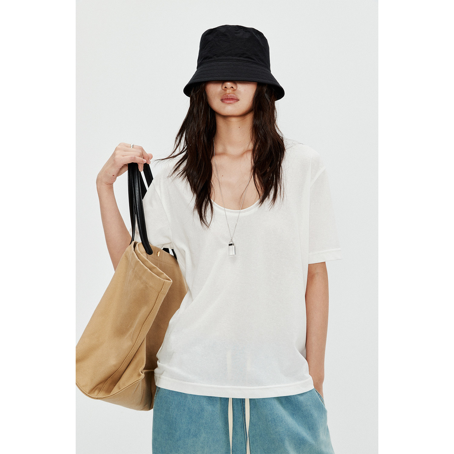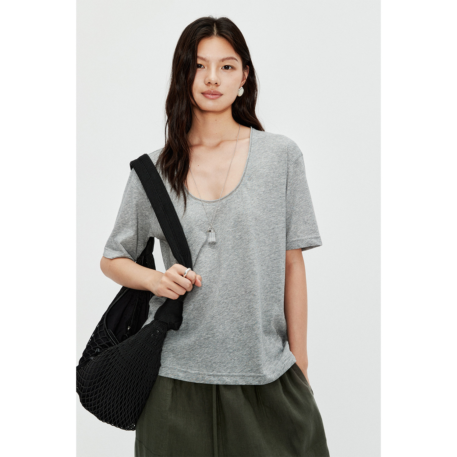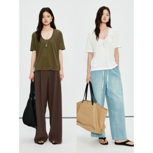 舒适亲肤自然卷边蛋形U领简约短袖 轻薄雪花棉 T恤 Studios MRS