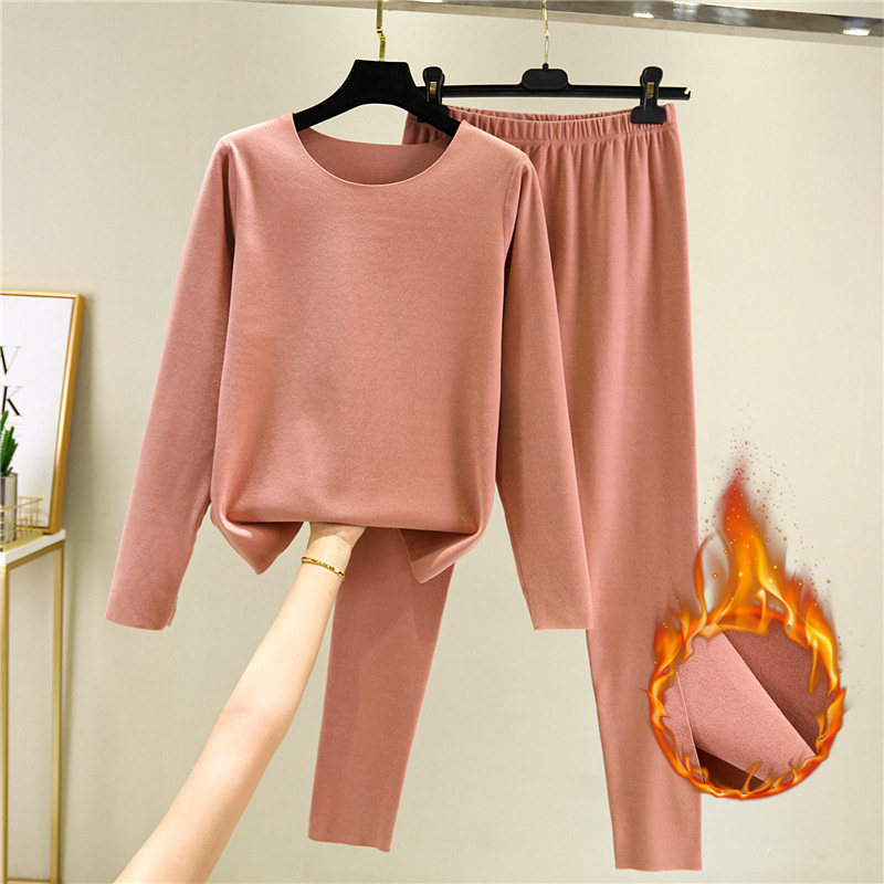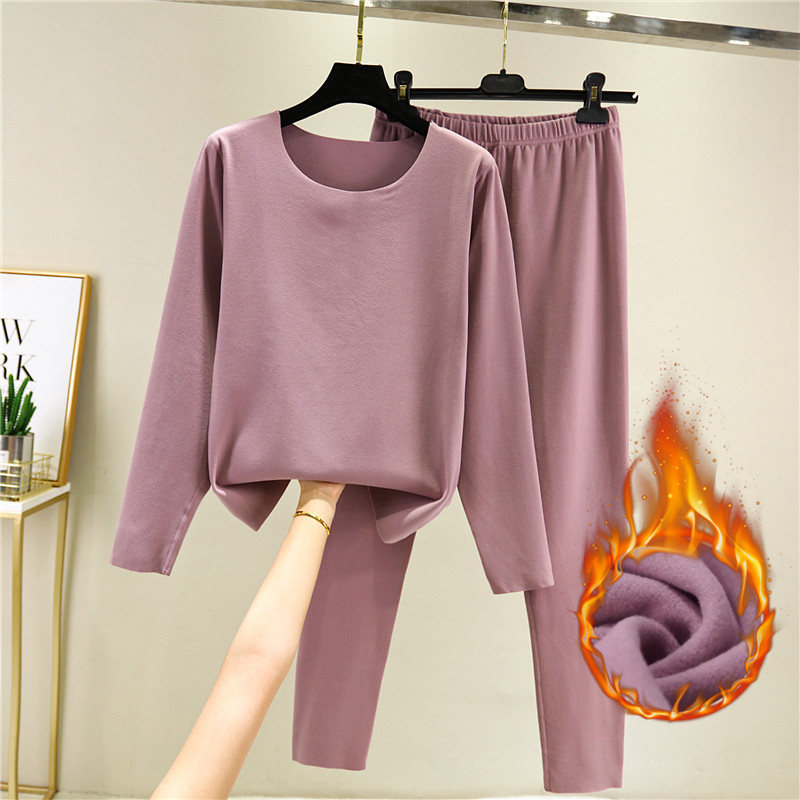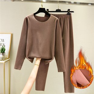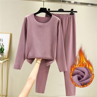 加绒加厚保暖套装 大码 女德容自发热秋衣秋裤 秋冬双面绒磨毛打底衫