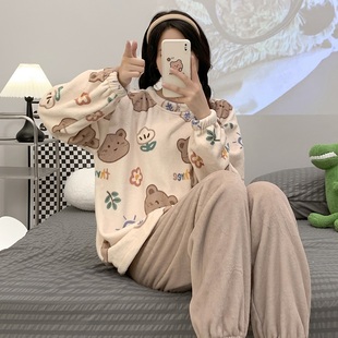 加厚珊瑚绒学生家居服套装 冬季 法兰绒睡衣女卡通2024年新款 秋冬款