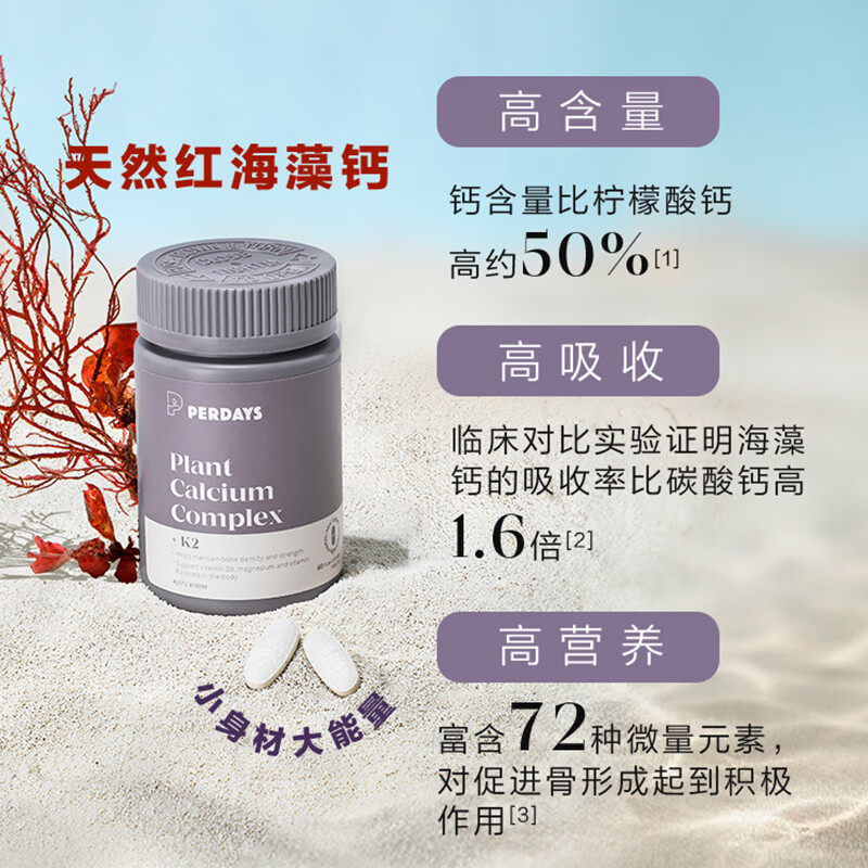 perdays孕期海藻钙维生素K2片澳洲进口孕妇专用哺乳钙片60粒3瓶装