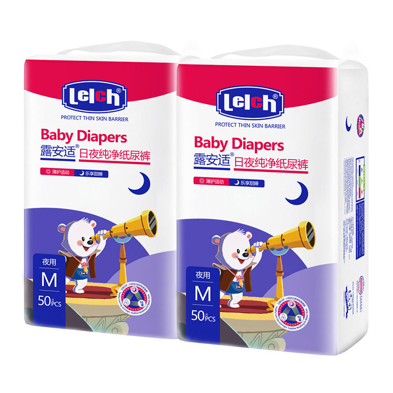 露安适艺术之星婴儿夜用纸尿裤 M50片2包超薄透气尿不湿非拉拉裤
