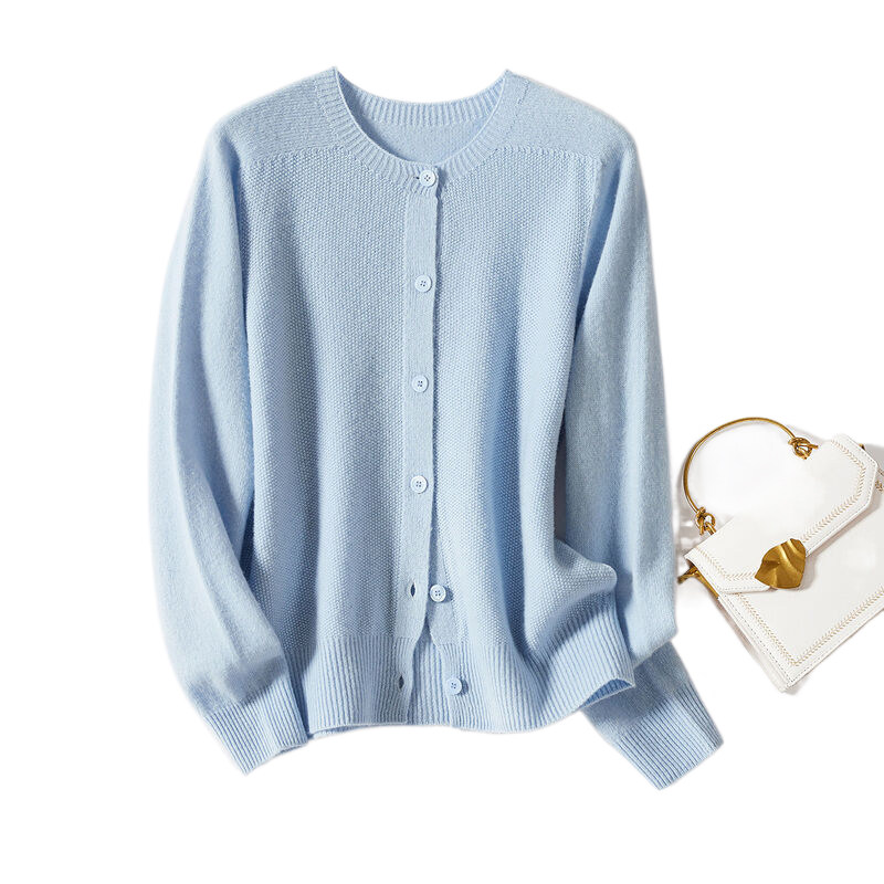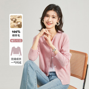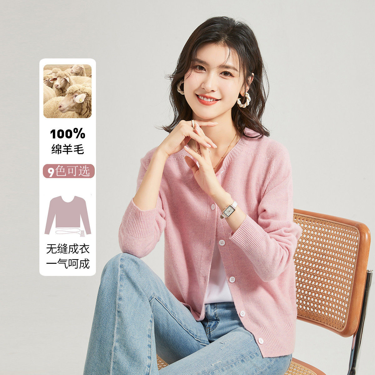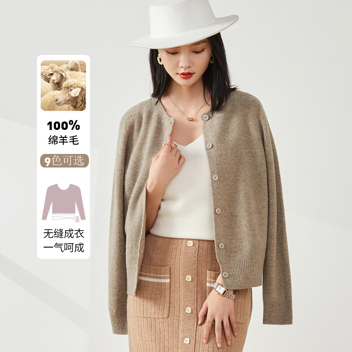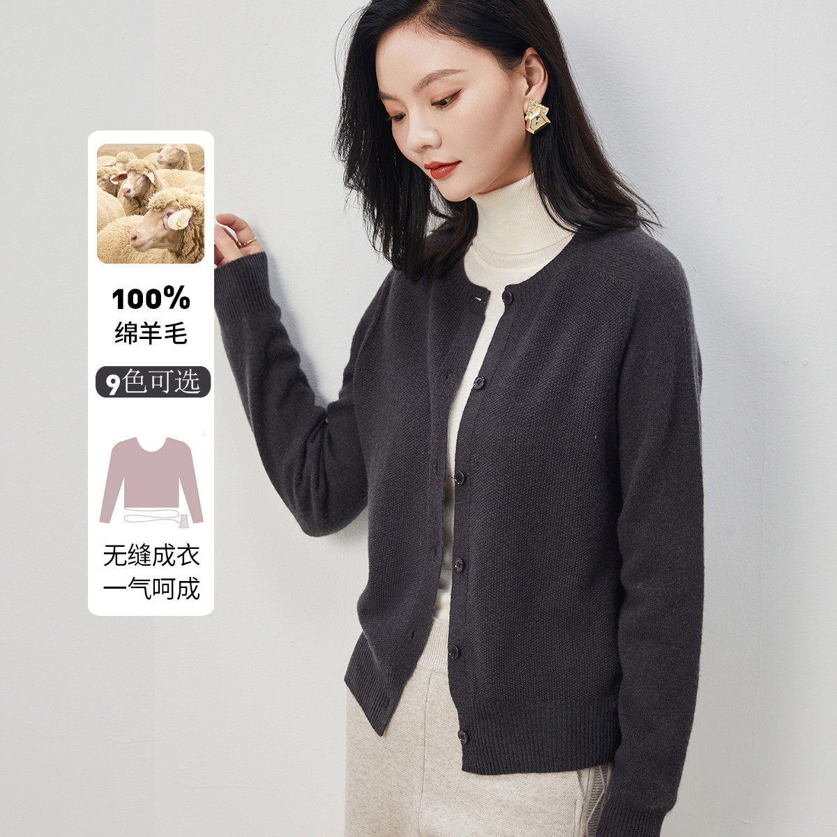 100纯羊毛 针织开衫 金菊女式 2025秋冬新款 保暖毛衣外套 羊毛衫