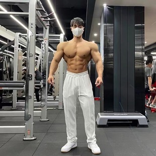撸铁灰色卫裤 长裤 训练宽松坠感高街美式 子秋冬季 男运动健身直筒裤