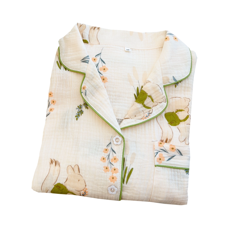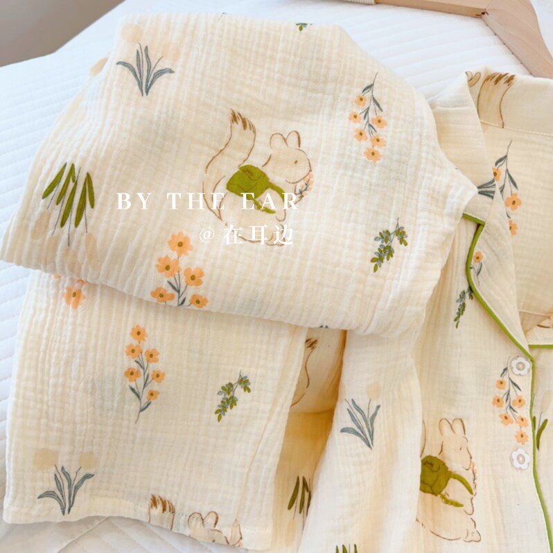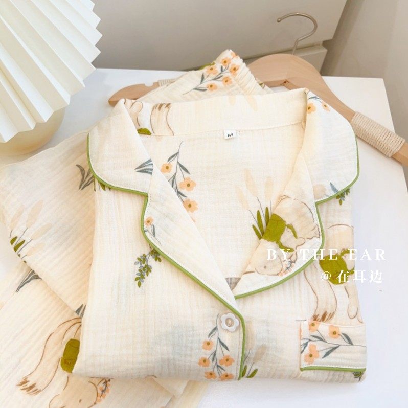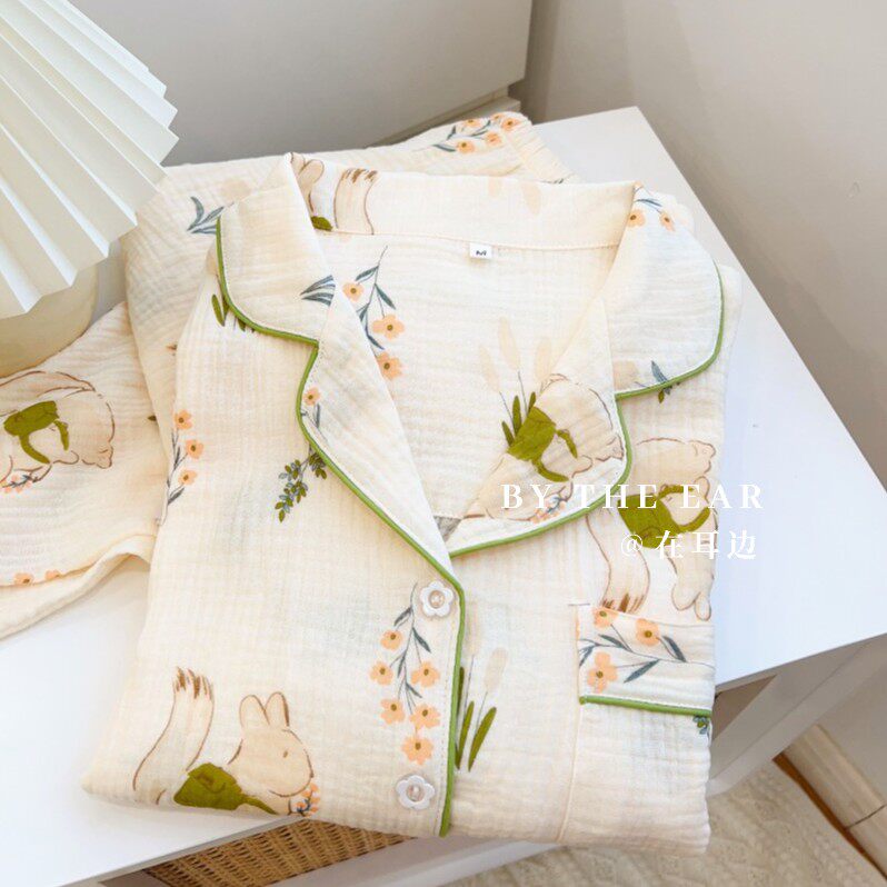 日系女士棉纱睡衣女春秋季 纯棉麻双层婴儿纱布少女家居服夏 长袖