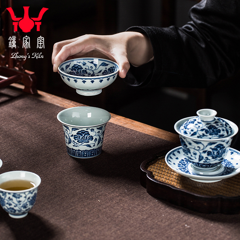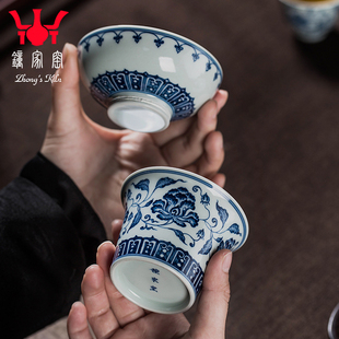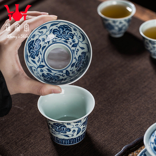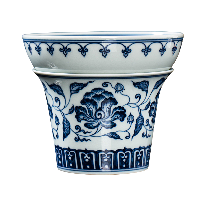 钟家窑茶漏套装 茶叶过滤茶道配件景德镇手工柴窑青花拓水牡丹茶滤