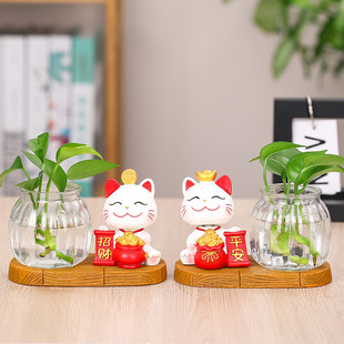 创意招财猫家居饰品摆件现代简约卡通可爱摇头办公桌小摆设女新款