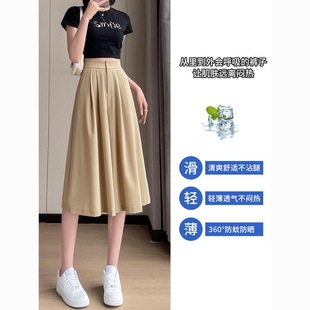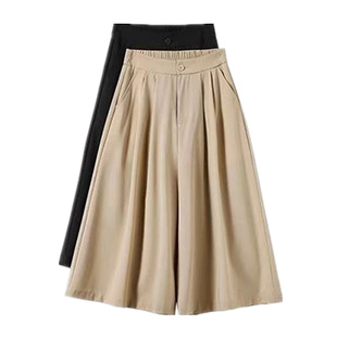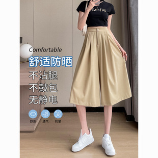 新款 女夏季 韩版 高腰垂感阔腿裤 裙 冰丝西装 宽松休闲半身裙裤 七分裤