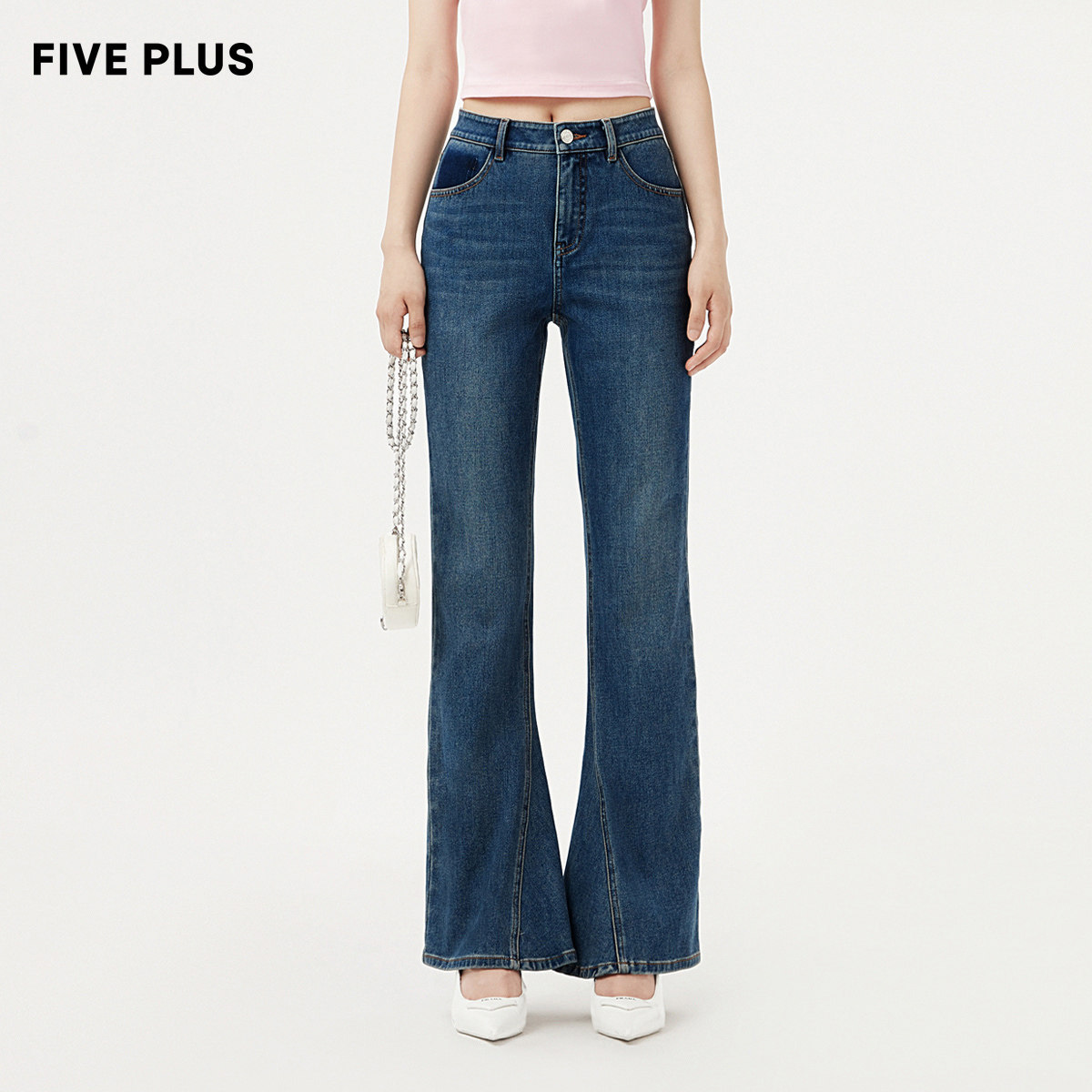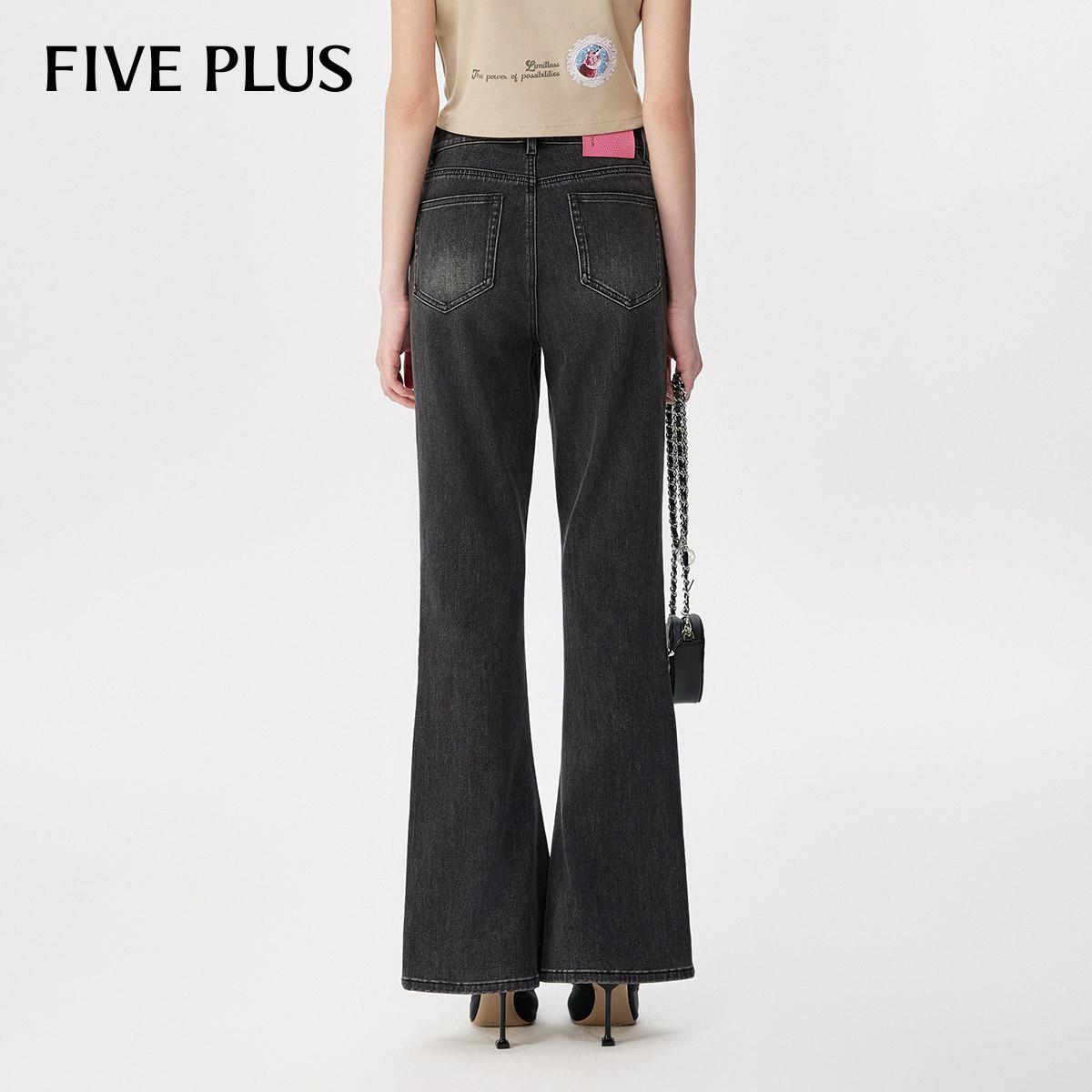 胖mm宽松显瘦高腰弹力喇叭裤 大码 女秋冬新款 复古不贴腿微喇牛仔裤