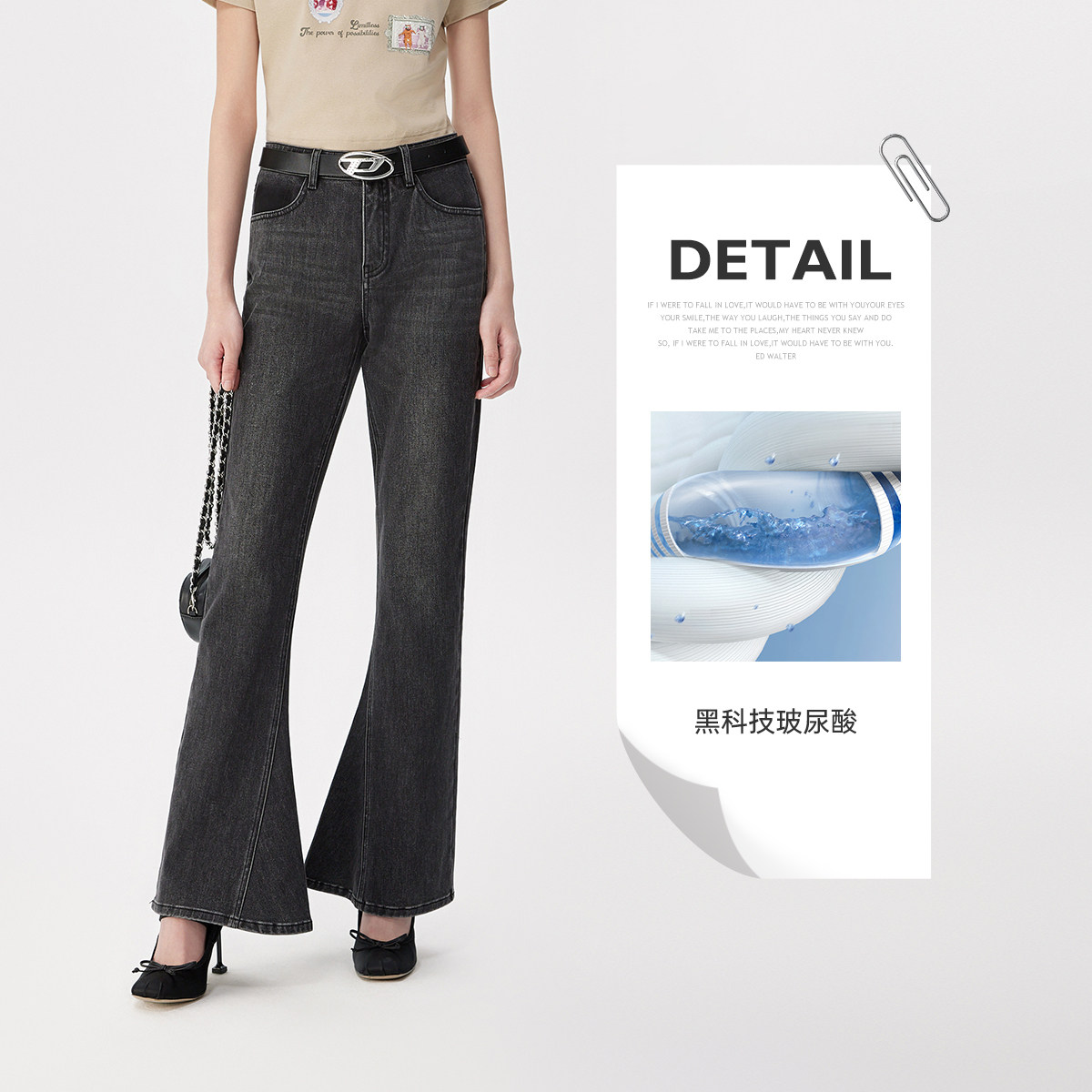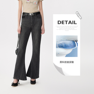 宽松休闲阔腿裤 爱情魔鬼鱼 新款 女2025冬季 黑灰色高腰复古牛仔裤