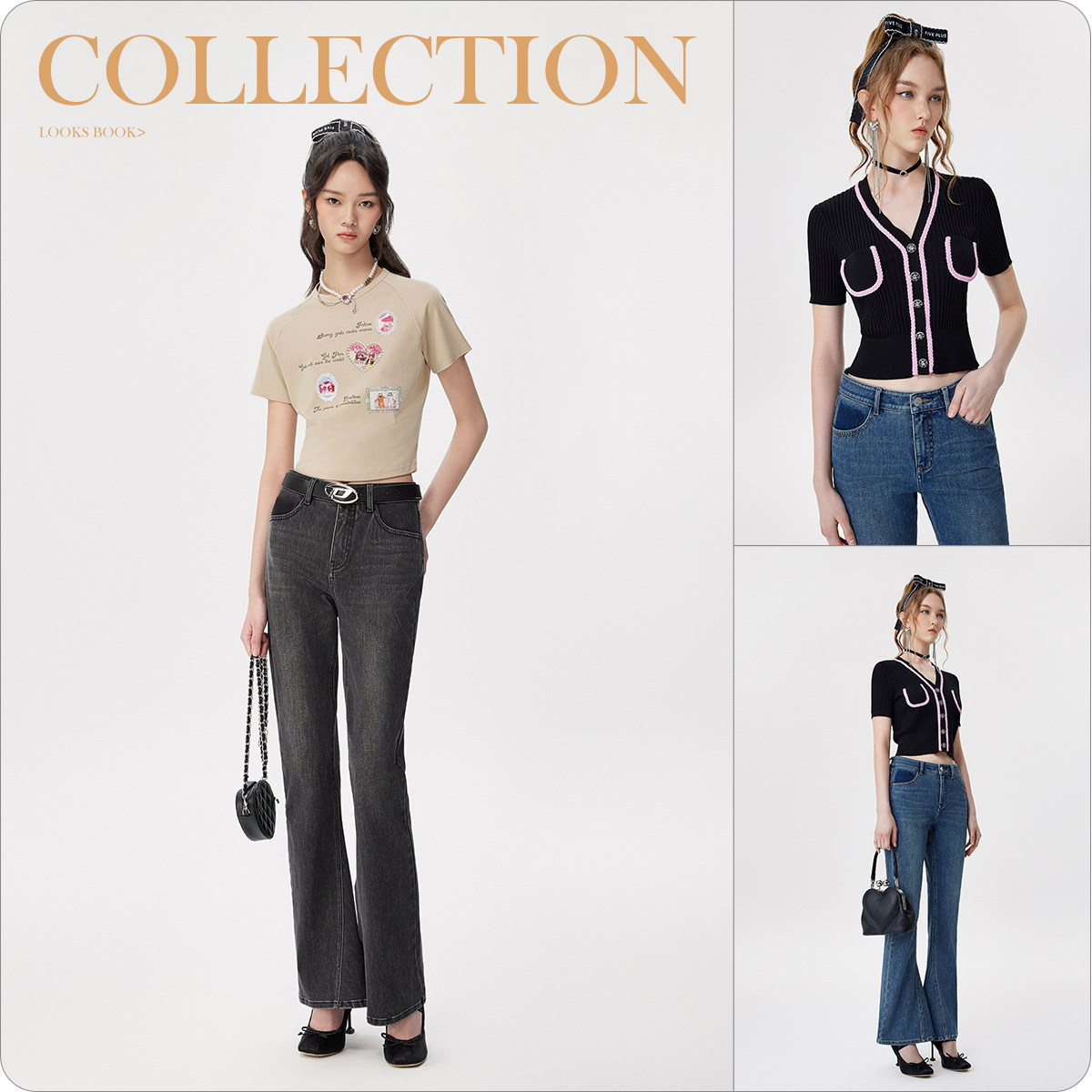 百搭直筒裤 老章和小胖PONGKIKI巴黎左岸雾感黑灰九分牛仔裤 女大码