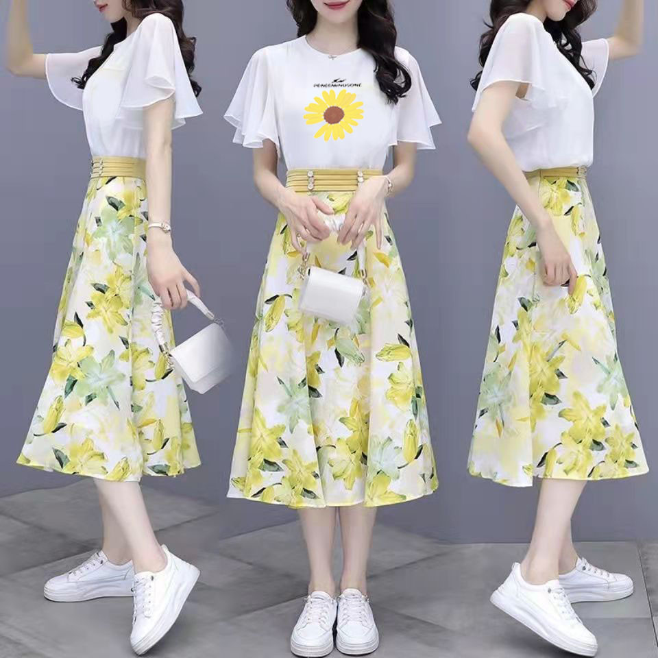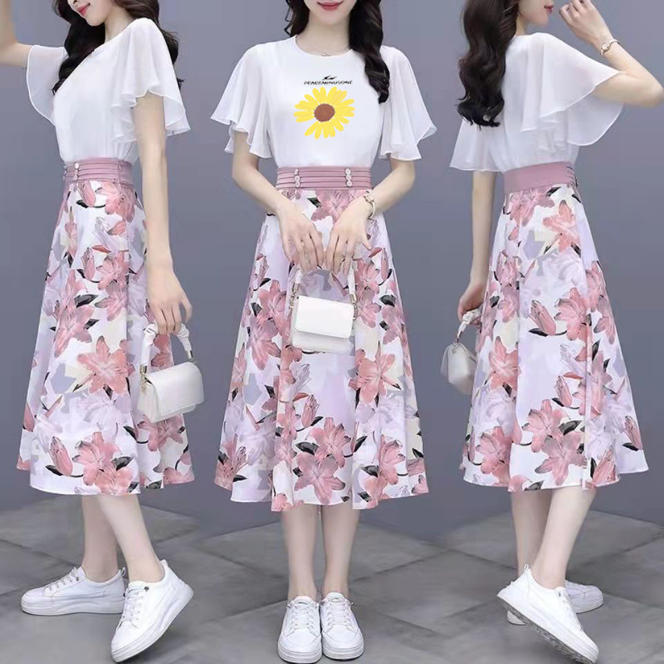 宽松显瘦两件套裙子女碎花半身裙 2023新款 小个子连衣裙套装 女夏季