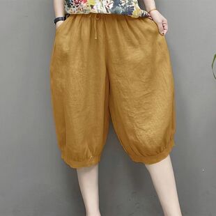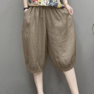 宽松显瘦哈伦裤 冰丝棉麻松紧腰灯笼阔腿裤 新款 女夏季 女 高腰七分裤