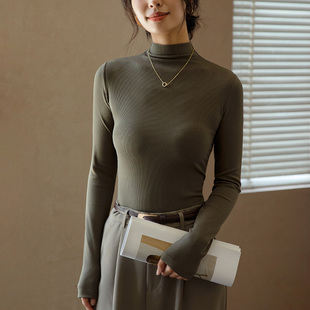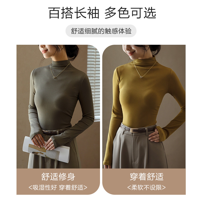 上衣 内搭秋冬黑色莫代尔可外穿薄长袖 猫人半高领打底衫 女2025新款
