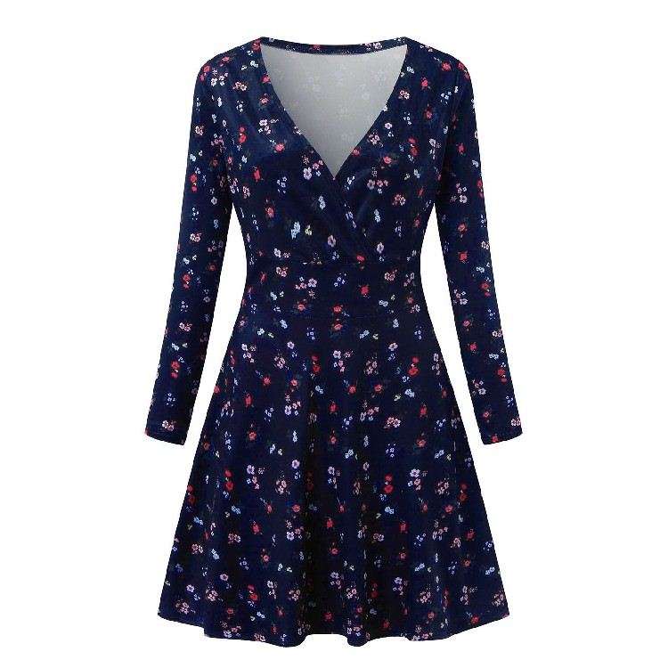 Sexy Sleeve Neck 性感V领连衣裙女 Floral Dress碎花长袖 Long