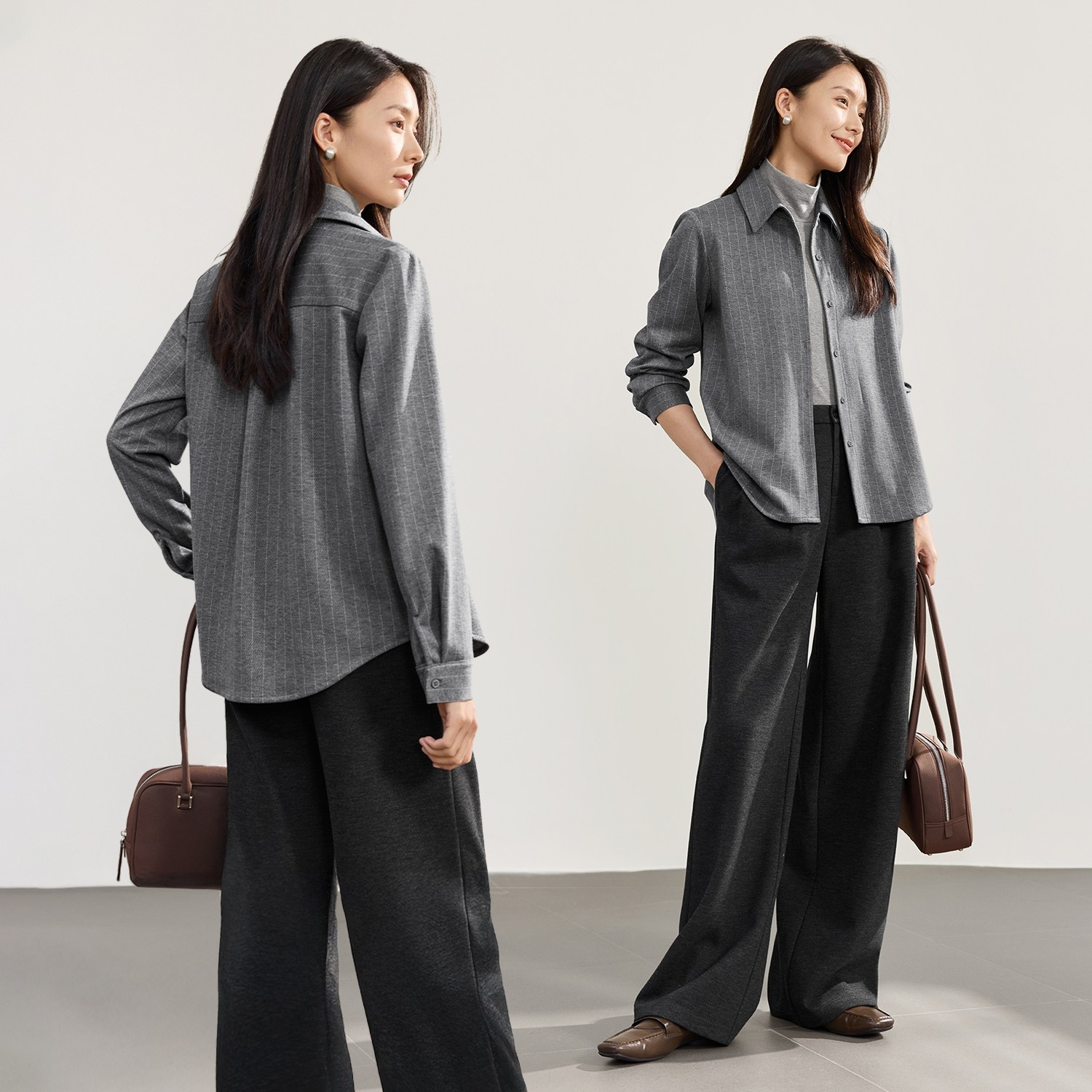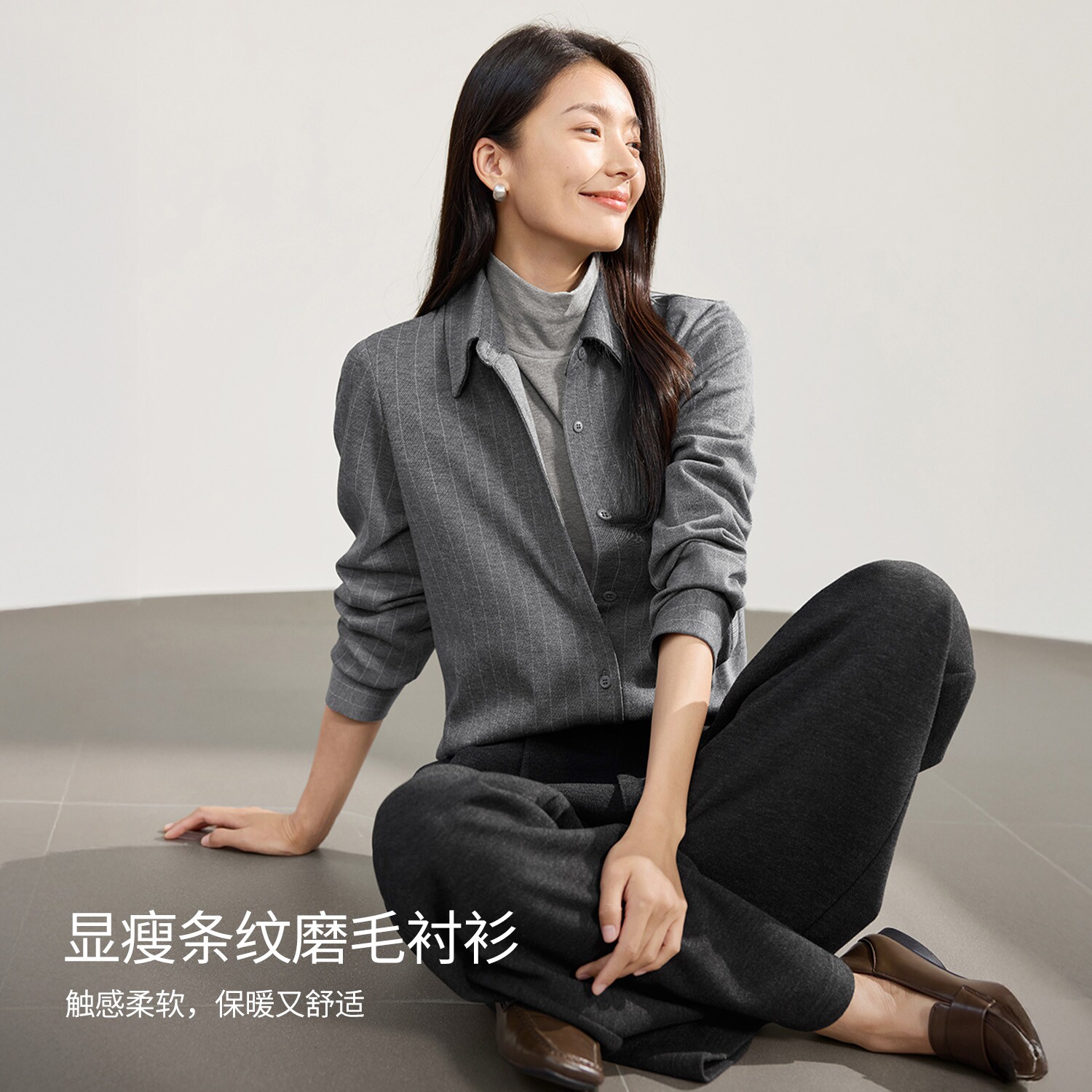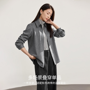 休闲高智长袖 时尚 上衣 女秋季 IHIMI海谧复古老钱风高级感条纹衬衫