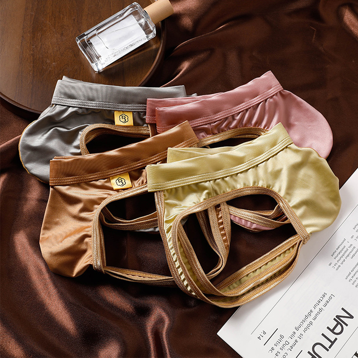 衩 性感冰丝亮面后空激凸囊袋漏臀三角短裤 丝滑柔光男士 双丁字内裤