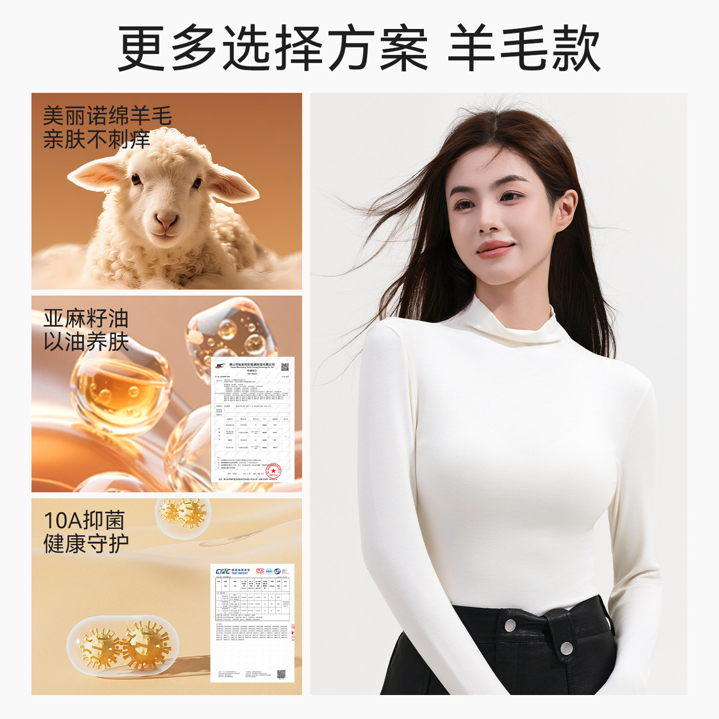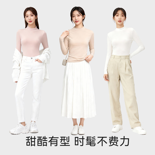 中领可外穿保暖内搭长袖 修身 上衣 女纯棉白色2025新款 半高领打底衫