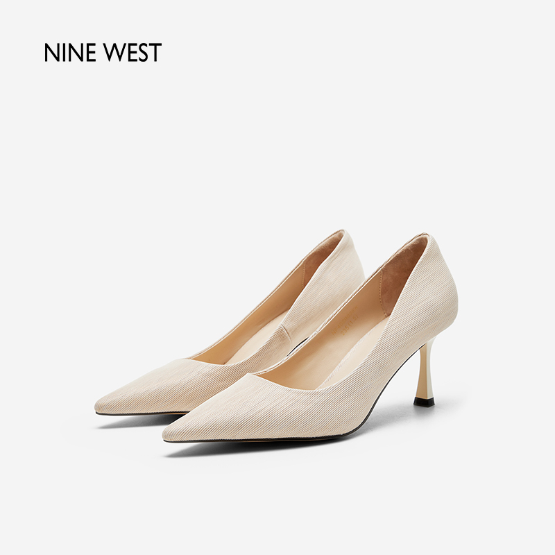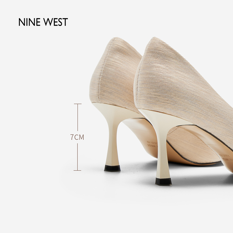 玖熙浅口单鞋 West Nine 女春条纹编织优雅高跟尖头气质 清仓款