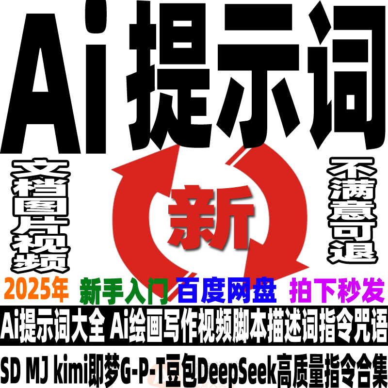 Ai提示词大全Ai指令合集Prompt教程MJ即梦Kimi豆包DeepSeeK文档SD