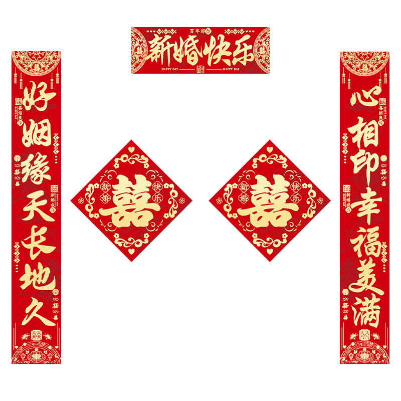 新婚对联防水撕不破黑字全背胶结婚对联大门喜联男方女方婚礼布置