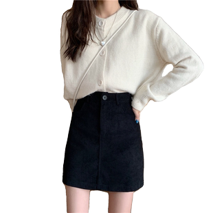 麂皮绒黑色半身裙女秋冬新款 百搭显瘦一步裙高腰a字裙短裙子 韩版