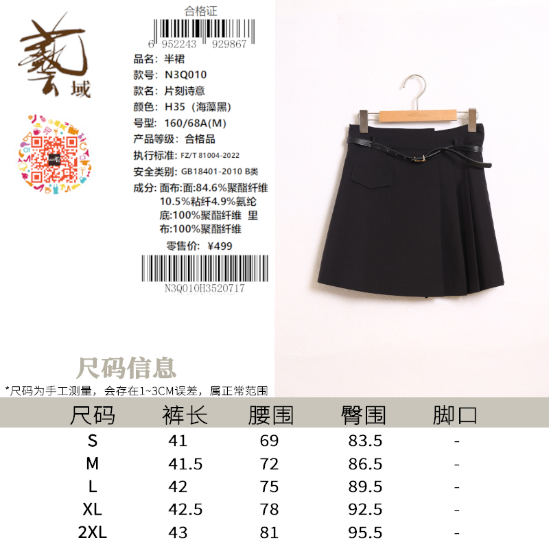 休闲经典 专柜秋新款 OL潮流百搭裙子N3Q010 正品 ART艺域女装