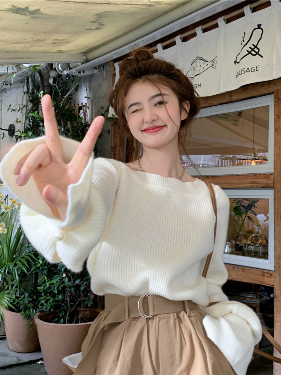 毛衣女 上衣秋慵懒感短袖 徐大脸吖定制 蓬松柔软无缝全羊毛针织衫