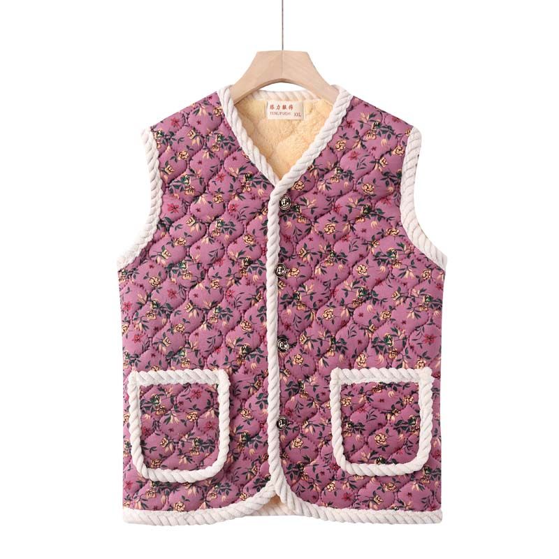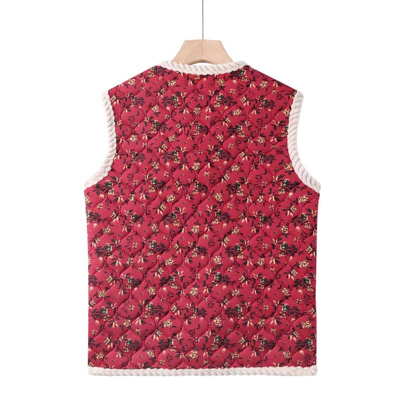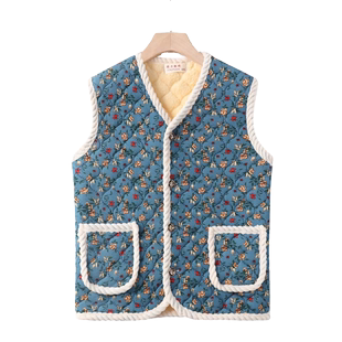 新中式 别致盘扣提花加棉马甲上衣 复古国风毛边棉坎肩女25春冬新款