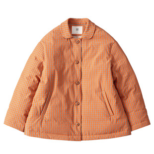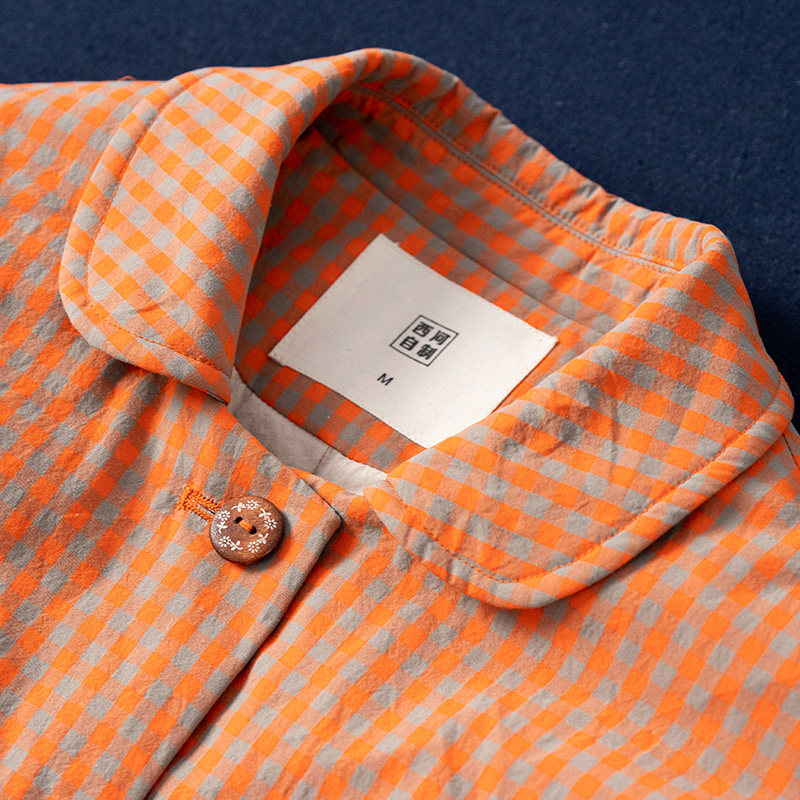 西河自制冬新色织精密莼棉里布棉95白鹅绒格子短款 羽绒服女