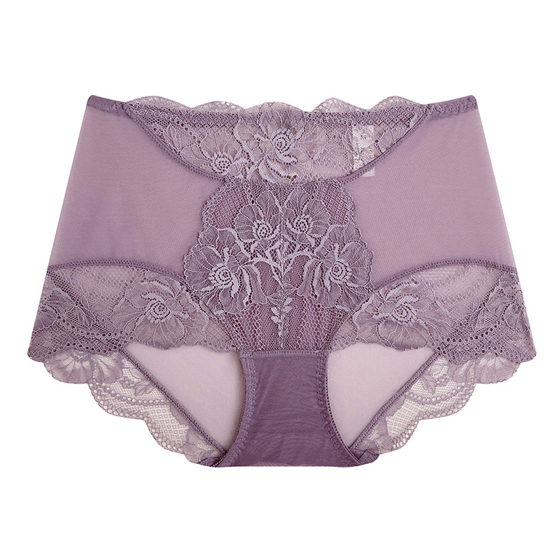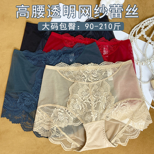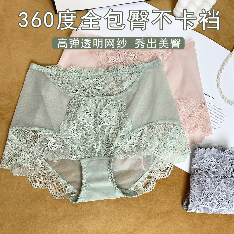 大码 3条内裤 短裤 透气网纱胖mm高腰包臀无痕女士平角裤 女蕾丝薄款